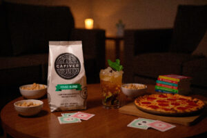 5 min. 1 p. Ingredientes · Hierbabuena · 1 Limón · 1 Espresso CAFIVER House Blend Descafeinado · 1 Shot de ron · Hielo